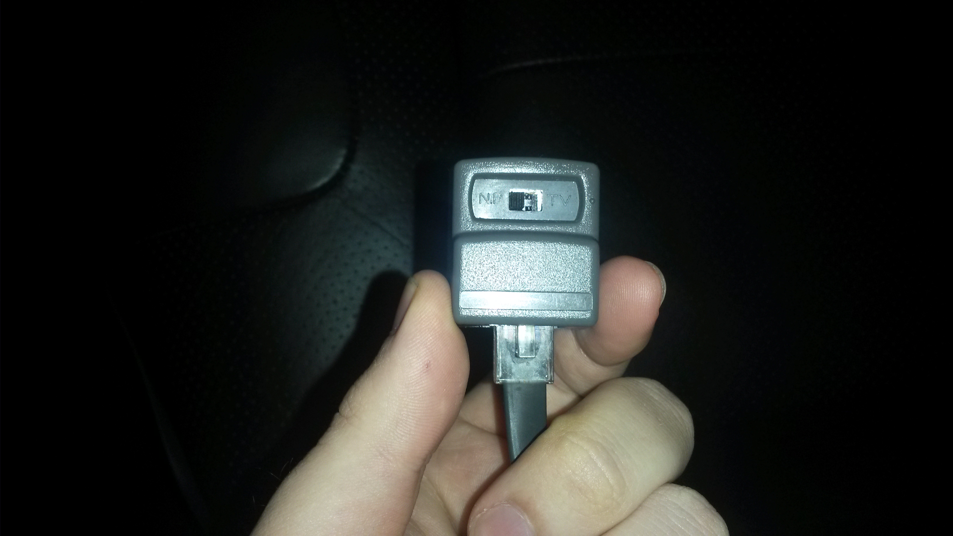 Hi, I purchased a used 2013 G37xS sedan from our local Infiniti dealer last night (They initially said I could drive it home last night, but changed their mind as I did the paperwork stating that the tint removal guy went home for the night, as it needed the window tint peeled off for MD laws). I picked it up tonight, and, on the way home I noticed the NAV system was very laggy, and froze for long periods of time. The sky was clear, so I was a bit baffled. Later on, parked here at home, I was fiddling with the NAV settings when I noticed a grey cable, resembling an ethernet cable, coming from under the dash and leading under the driver's seat. Curious, I investigated and found the other end contained a little box with a small switch, with two options: TV and NP. I had insight to place this little box up on top of the dash and voila, the NAV was working smoothly and normally as I drove up my neighborhood slowly.