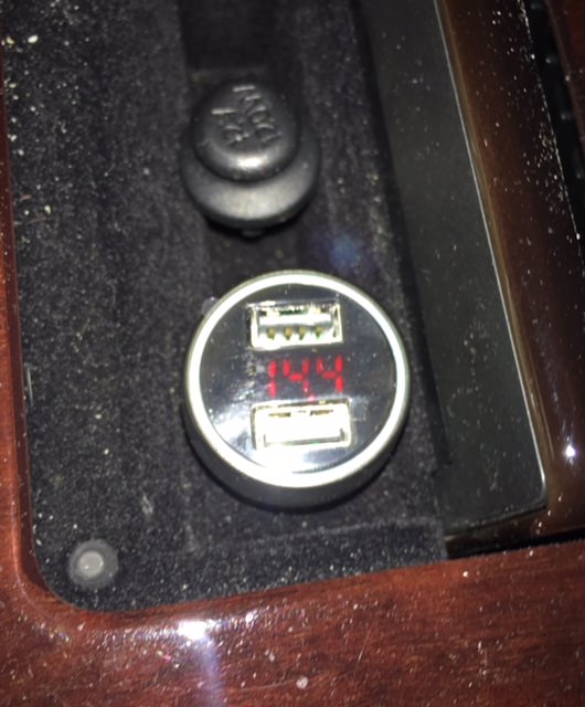 Right. There are some very compact and short USB port plugs. If I can find one I can get into without destroying it, the meter could be connected to the 12 volt input and then that could be used instead of the accessory plug. That would be neat, more functional, and the door could be closed also.