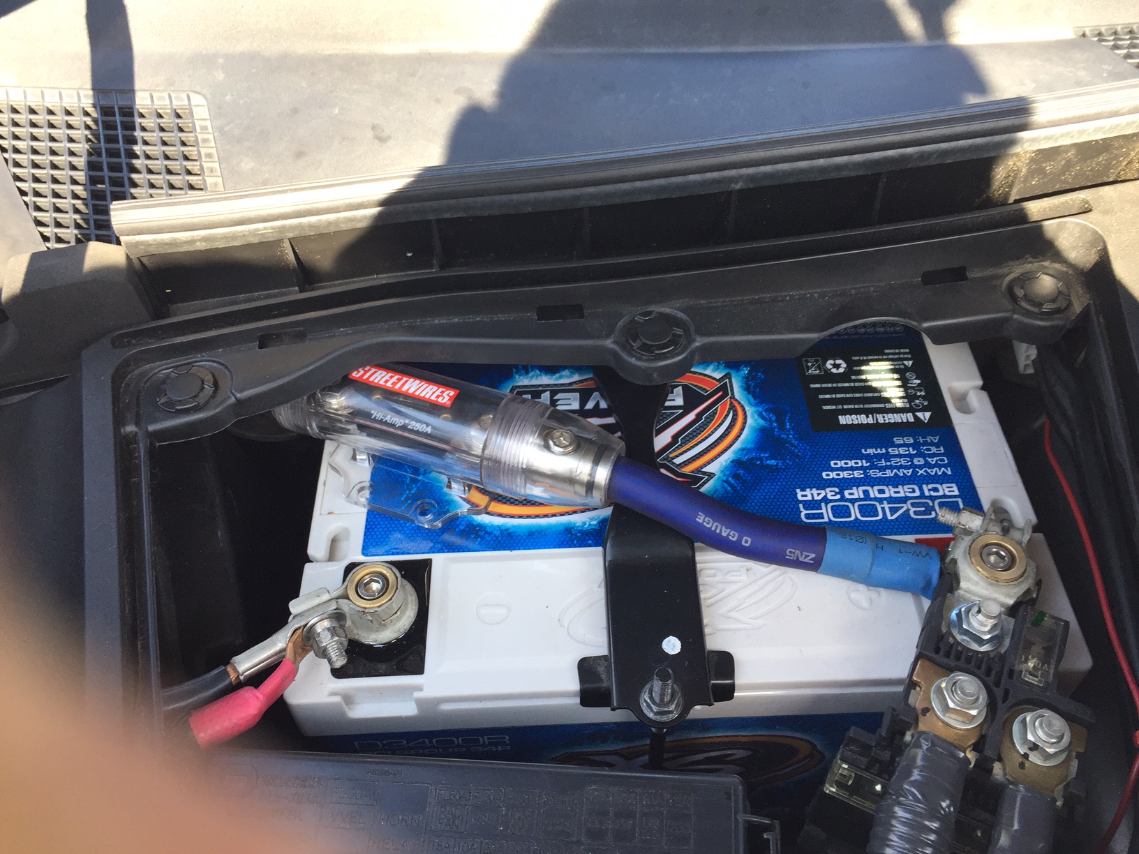 I just had one installed as part of my subwoofer install and it fits w/o modification to the battery tray, but it is a tight fit. It's a tremendously powerful option for anyone looking to run a high powered audio system in your car. I have Street Wires 1/0 gauge with a 250amp ANL fuse powering a Kicker CA1200.1 pushing 1200 x 2ohm running a Image Dynamics IDMAX 12" 4ohm wired in parallel. easy power. I do have a grounding kit too.
