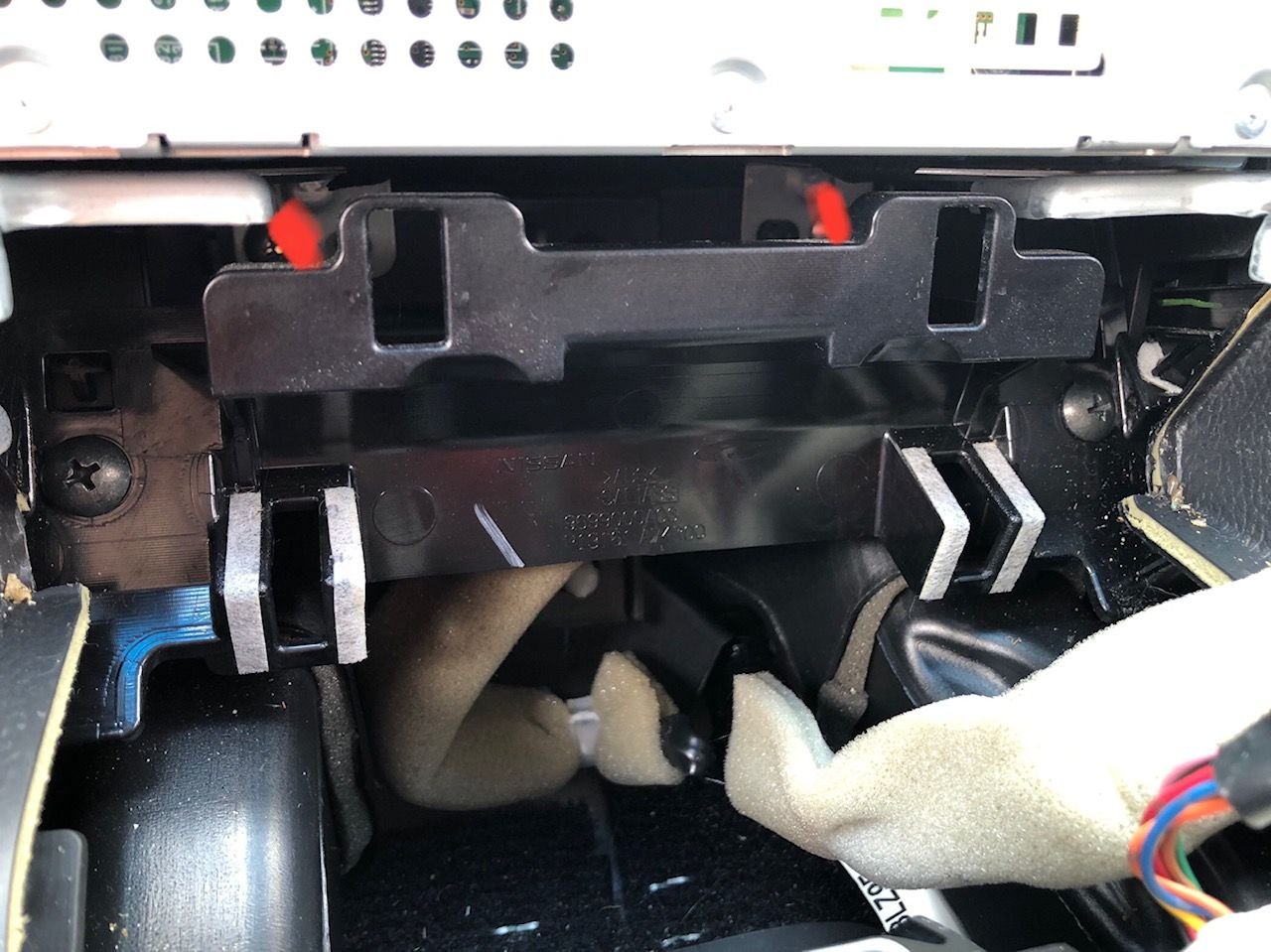 Anyone replaced the BCM in a Q40? I have the removed most of the components necessary to remove the controller for replacement, but I am stuck - one of the brackets at the bottom of the console doesn't look simple to remove, and it prevents access to the bottom two screws that hold in the Radio/BXM Bracket. Anyone else had this issue - or removed the BCM in a 2015 Q40? Pics below. Screws that I need to access are highlighted in red...... trying to figure out how to remove the black plastic bracket in front of these screws. (Removing the black screws left and right of the bracket don't free up the bracket.)