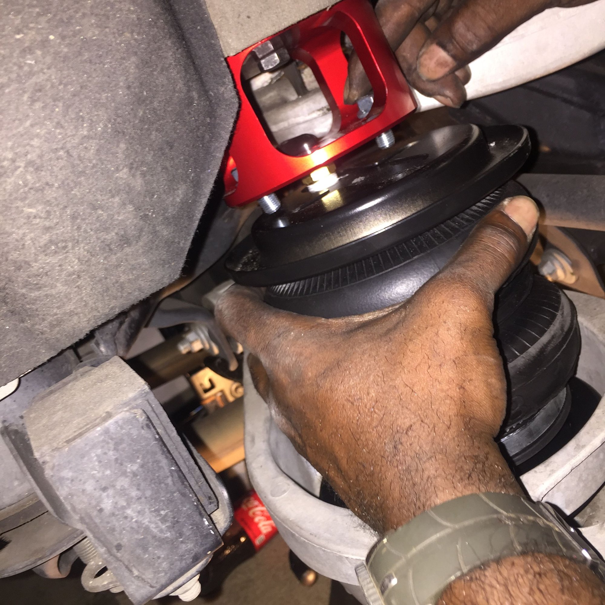 I've been riding around on the Teins for a little while now and loving the stance BUT not enjoying the driveway scrapping that happens every time I go to my brothers house. With that being said I'm going to put this thang on air, it doesn't make sense not to.