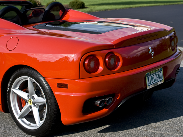 I'll start off by showing some end results of a long detail performed on a Ferrari 360 Spyder. The last two steps the paint received was an application of Dodo Juice Lime Prime Lite, a pre-wax cleaner that helps add gloss and depth to the paint and provide an ideal surface for the Dodo Juice Waxes. After DJ LPL, I opted for Dodo Juice's premium wax, Supernatural.