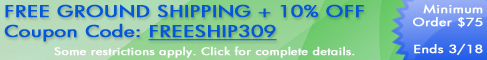 Now's the time to save money on shipping and get 10% off your order. Simply enter in the coupon code FREESHIP309 when you spend at least $75 and you'll receive 10% off your order and free FedEx ground shipping to any of the 48 contiguous states. Offer ends on 11:59PM 3/18/09 EST.