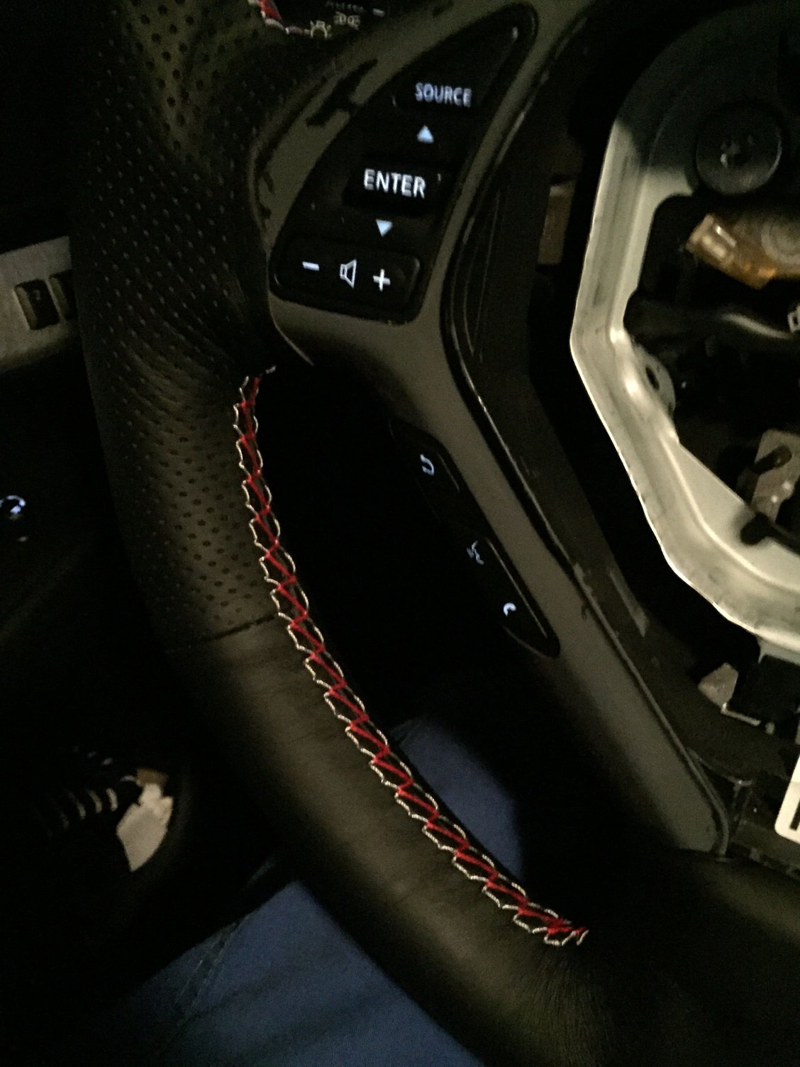 Another picture of my result. ~6-8 hours labor, wheel taken off for a weekend and worked on over the course of the weekend. Not the stitching color they provided, changed to match sport thread.