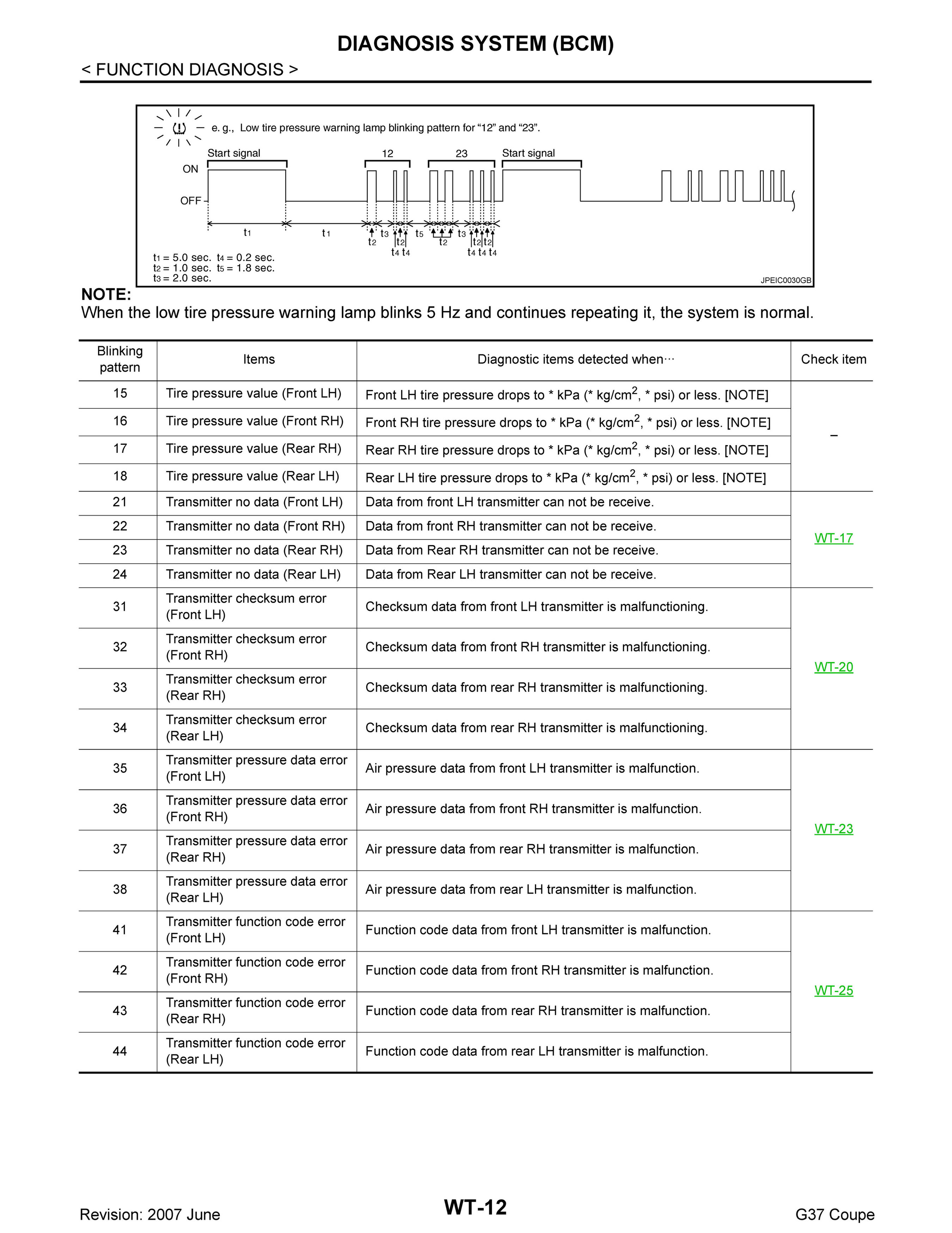 To do that, first turn the car to the on position and ground terminal of the tire pressure warning check connector. The malfunction location is indicated by the low tire pressure warning lamp blinking.