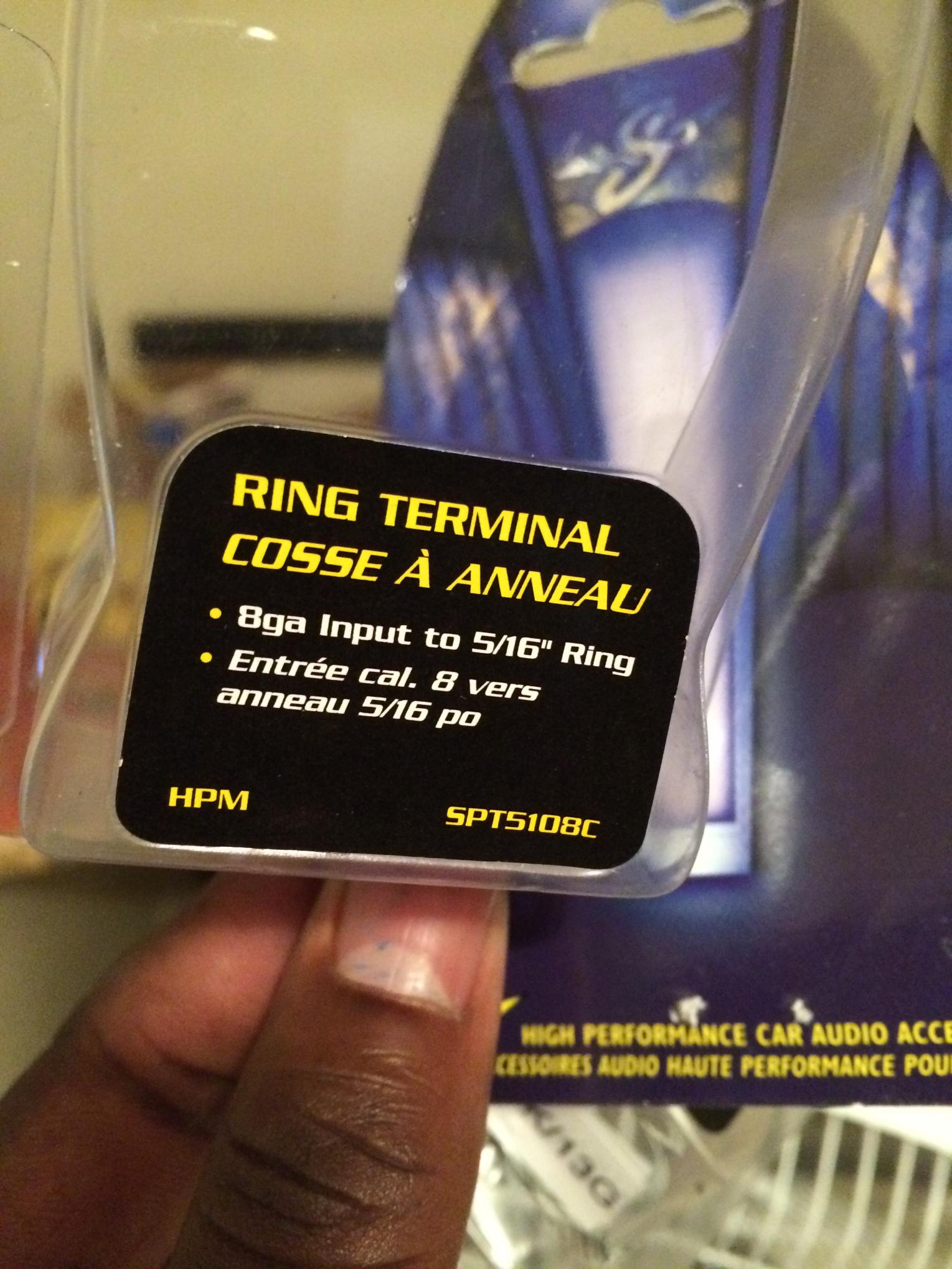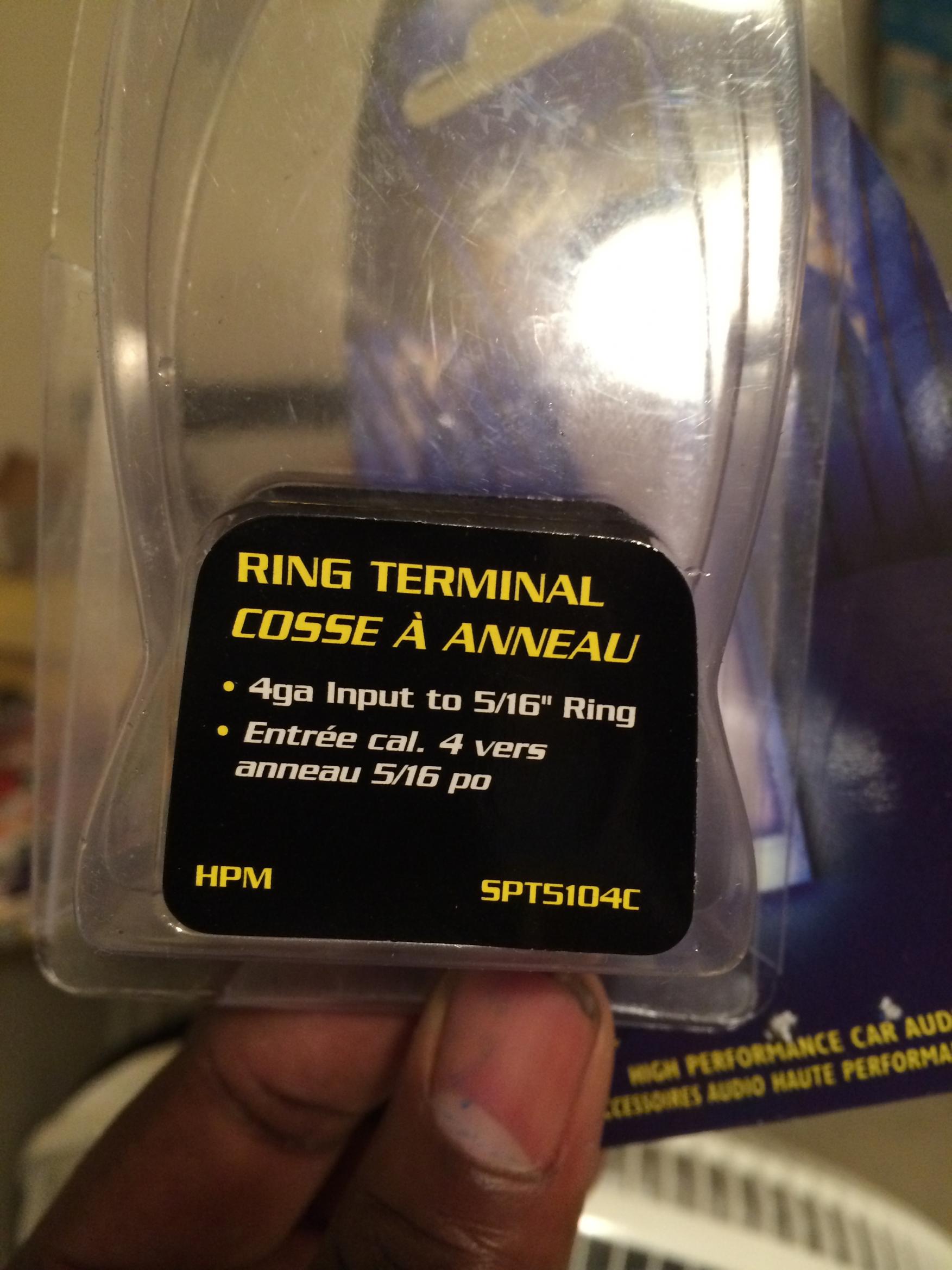 I couldn't find the 4 gauge ring terminals there and at the Canadian tire so I had to go to go to future shop, also bought the wrong 8 gauge ring terminals, best place to get them best buy or future shop in automotive section.