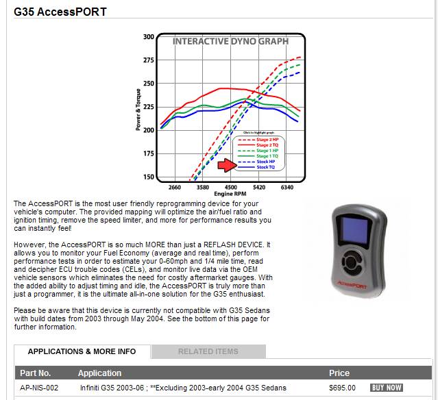 True, when I had the AP for my Speed 3, they sent you a stock map and you were able to download maps that were related to their aftermarket products (intake, exhaust, ect). Also with the Mazda they can view your ECU writing dates, which means if you upload a map to your ECU and go back to stock it will state the date you made the change. Of course the G37 could be a little bit different, but most dealerships look over that anyways.