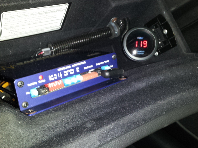 The next upgrade I wanted to install was a transmission temperature gauge. The 7AT already has a trans temp sender but can only be accessed by the Consult 3 diagnostic scanner. Cipher or any other OBD2 scanner that I know of can not read the trans temp. Solution? Install a simple temp sender. But where? So much information out there as to where to install the sensor. I figured that since the OEM sensor is in the valve body put the aftermarket sensor in the oil pan. Simple solution is to get a NPT to 12MM adapter and change out to drain plug. I swapped out the plug and only lost a teaspoon of trans oil. The sensor looks like it is hanging down but unless you are going off road there there won't be any problems. The exhaust pipes are lower. I didn't want a lot of gauges all over the palce that's why I picked the glove box.