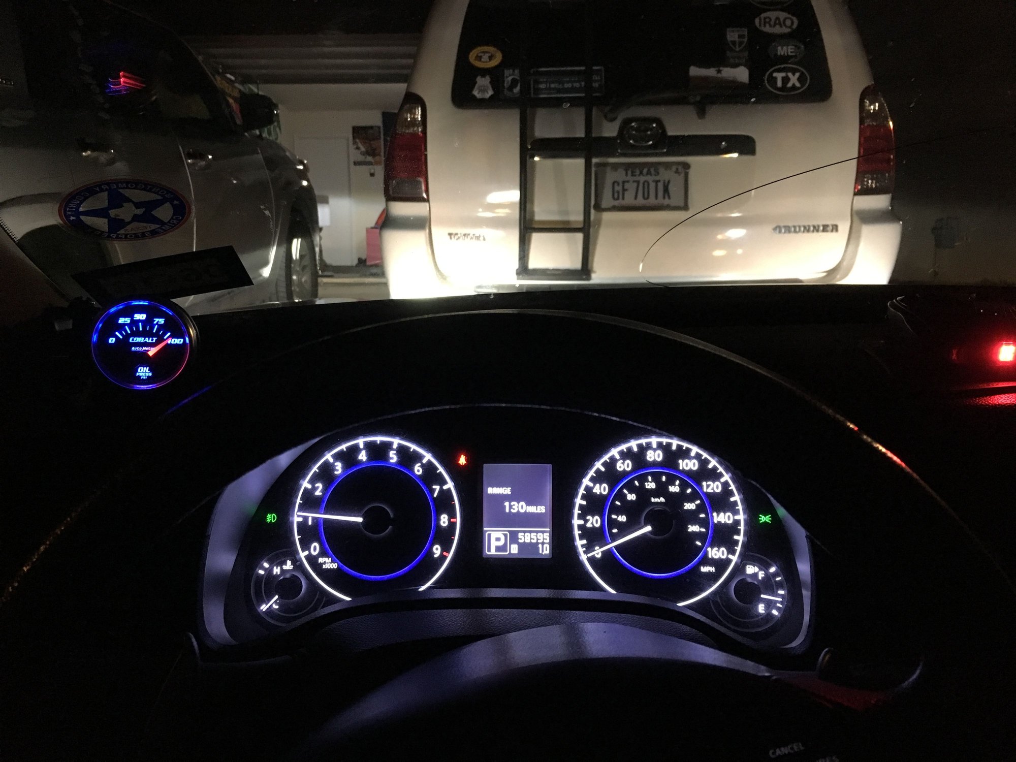 I installed my oil pressure gauge, and I feel a little more safer. I can't believe a higher end car doesn't come with one! I tried to keep it as close to the stock gauge cluster as possible, so I went with a auto meter cobalt series.
