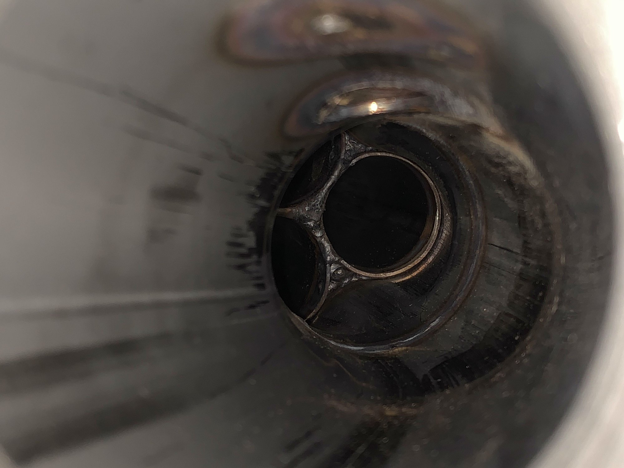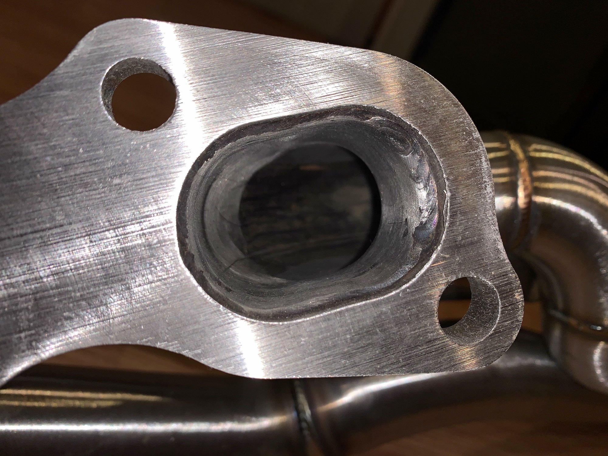 2/15/21 - More pics just for fun Raised tack welds on 2-bolt gasket Y-pipe hardware Clean welds neighboring the blemished looking welds between runners. Y-pipe opening Other collector, with inner welds shown.