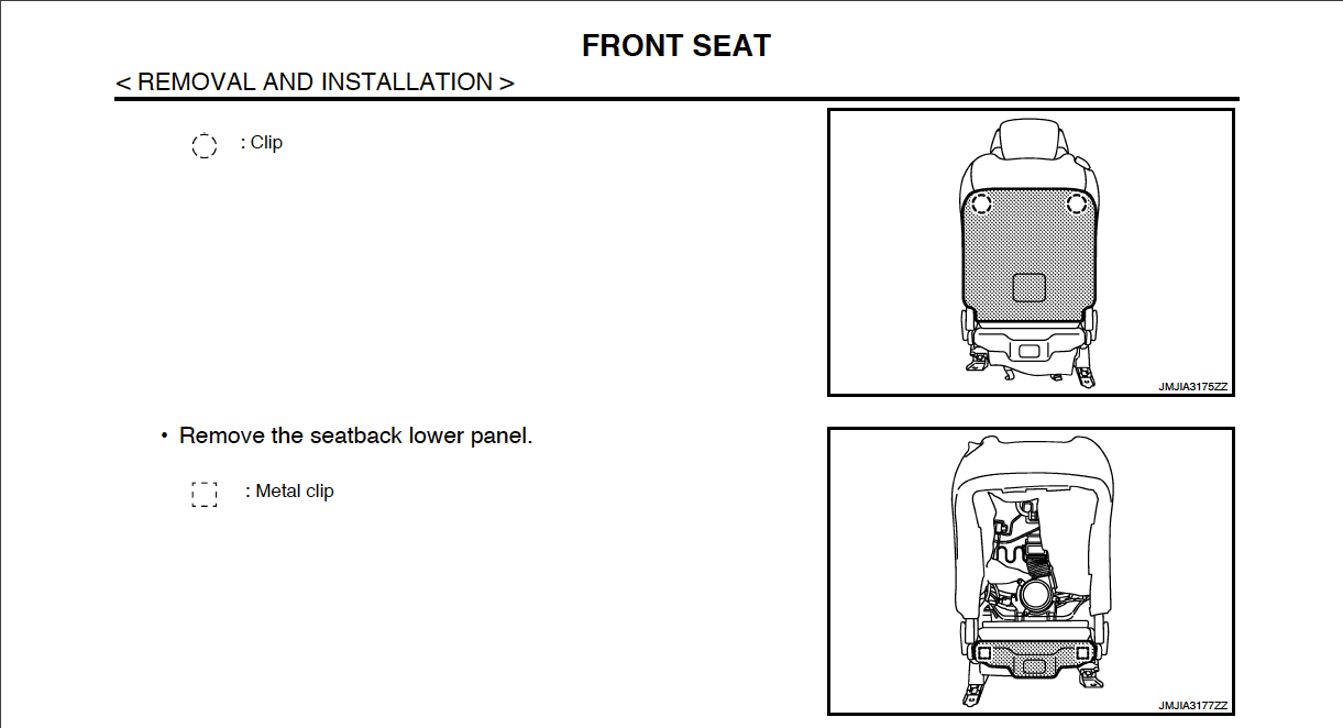 After poking around for a couple days I couldn’t find a thread indicating how to get the hard plastic seat back off the front seats in our 2010 Vert. The schematics others have posted indicate a pair of metal clips about a quarter of the way in on each side about 3-4” down from the top. Squeezing fingers in from the top and I can feel the flat top of what feels like maybe a 1.5” wide plastic hook molded into the seat back. But that’s speculation from feel alone.
