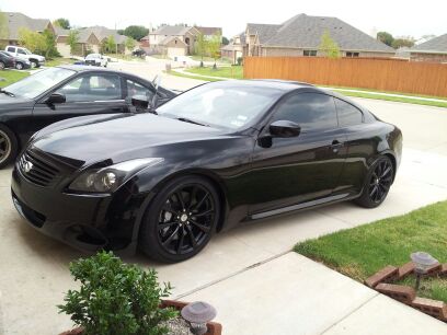 Hi I recently purchased a G37S lowered on springs and everything being powder coated black. I haven't done much but change the fogs to HIDs and the parking lights. The goal of the car is to make it more of a vip style with full suspension and some deep dish wheels to accommodate the beautiful body of the G37. Glad to be apart of the G community