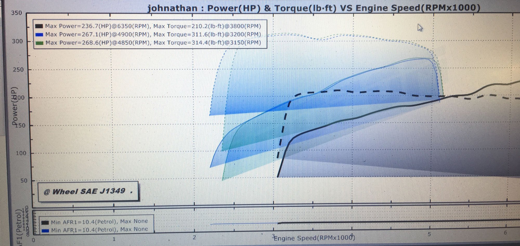 The first pull was on 5th gear and made 236/210 the next two were from 4th gear and I have a 7AT btw but I was amazed when I saw those tq numbers because I've never seen a g37 make that much torque even fbo ( Also have a stillen grounding kit )
