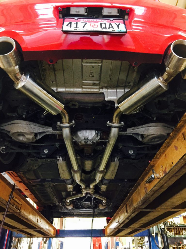 Nice. Looks good. The HFCs will really open the exhaust up and make it all come together. The stock cats remind me of the SPIRIVA commercial for COPD where the elephant is sitting on everyone's chest and they can hardly breathe. Well that's the stock cats on these cars...