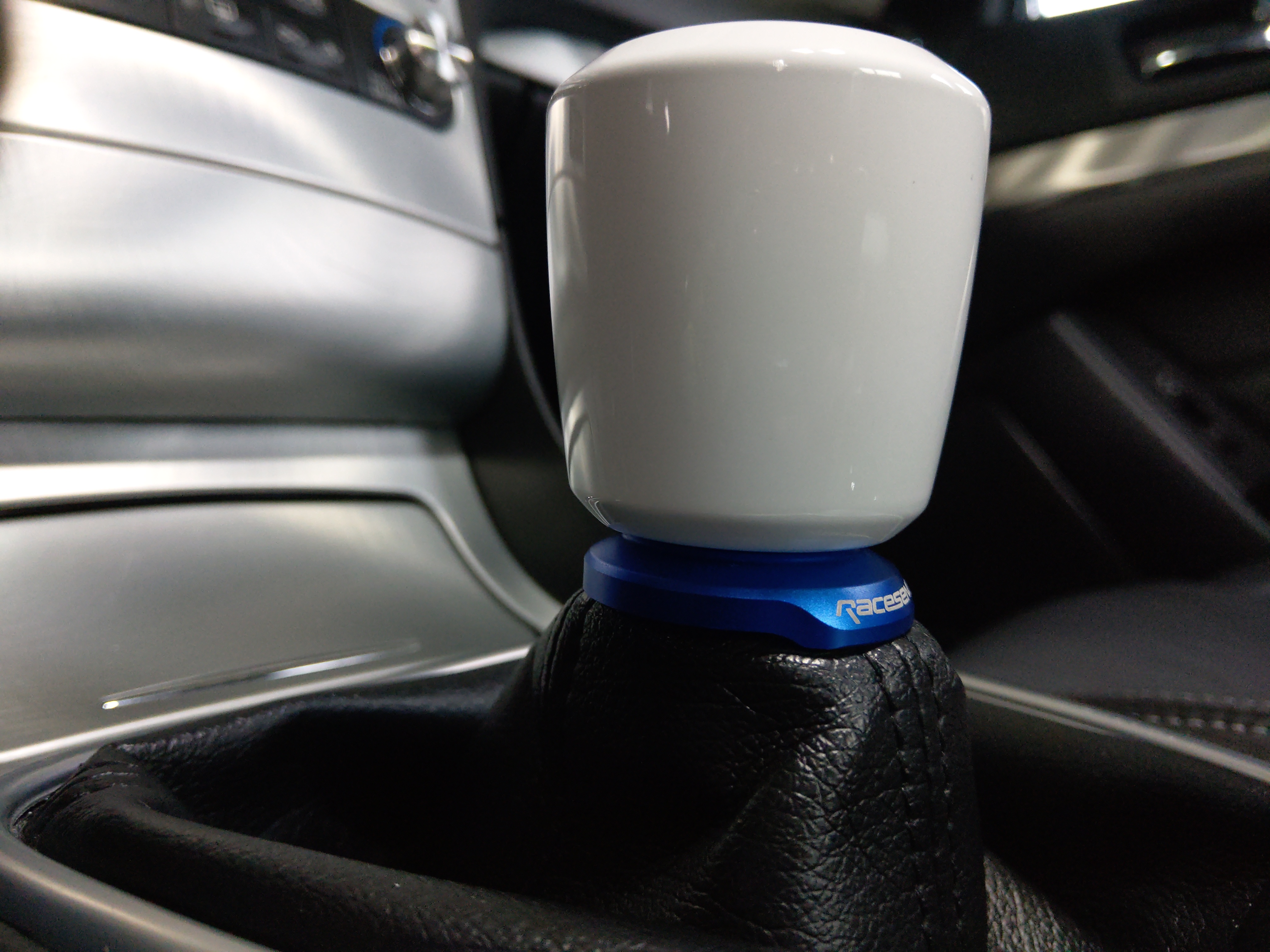 Installed a new shift **** and shoot boot retainer / collar. Had a custom **** made from Raceseng. I went with the Ashiko powder coated in white gloss with the shift boot retainer / collar in translucent blue. i wanted to match the colors in the gauges, my ESCORT 9500IX, and my exterior (Moonlight White Pearl). I cannot say enough about the quality from Raceseng. This **** is HEAVY, weighing in at 735 grams or 1.6 pounds. Something I never want to do ever again......... remove the OEM shift ****! It was a horrible experience.