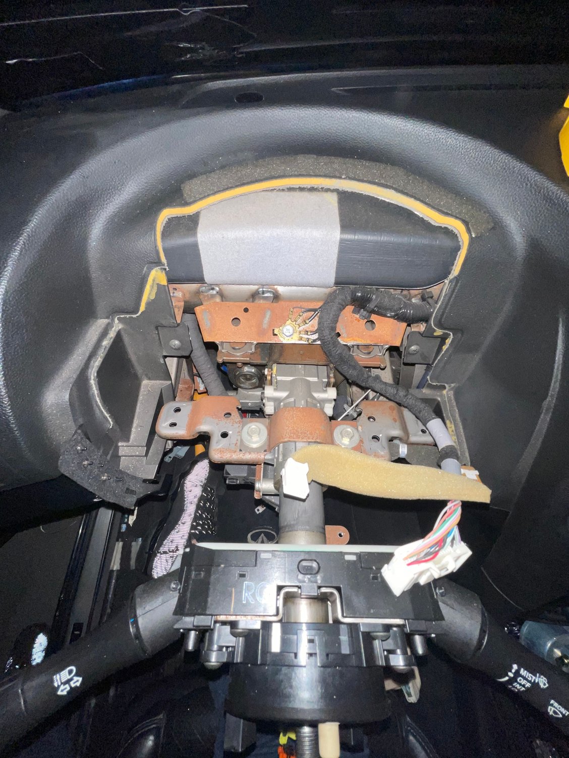 Only to find out that there’s no ESCL to be found?! There’s literally no box with two shear off bolts and an electric connection to it. I looked below and read somewhere on here that it could be on top. So I took the steering wheel off and the cluster and still nothing!