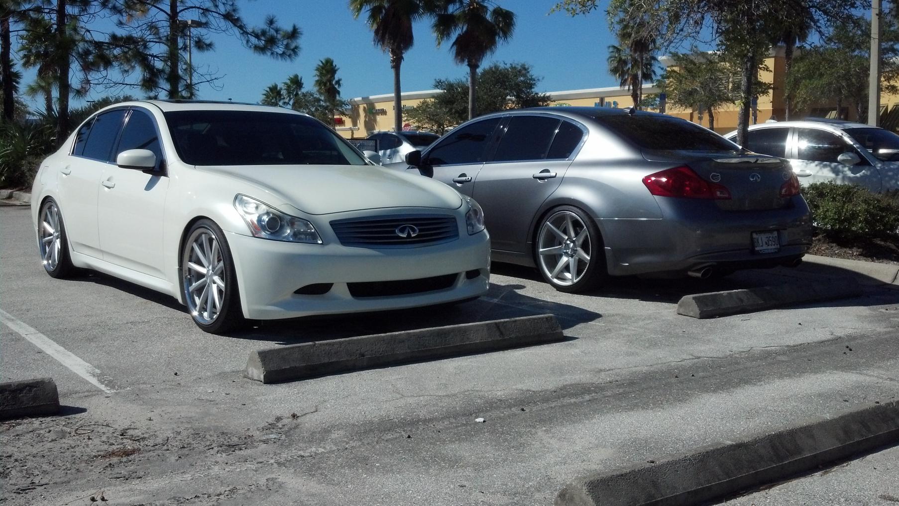 I like those rims on the silver car. I went to the Vossen website and can't decide between CV7 and CV5. I like the CV5 that is Graphite but with the Silver accents (Matte Graphite Machine). How much do these wheels cost? And what size tires would I have to get for a G37x that is currently running on stock 17s (I think...need to verify the tire size I currently have). I would want to upgrade to 19 or 20 inches