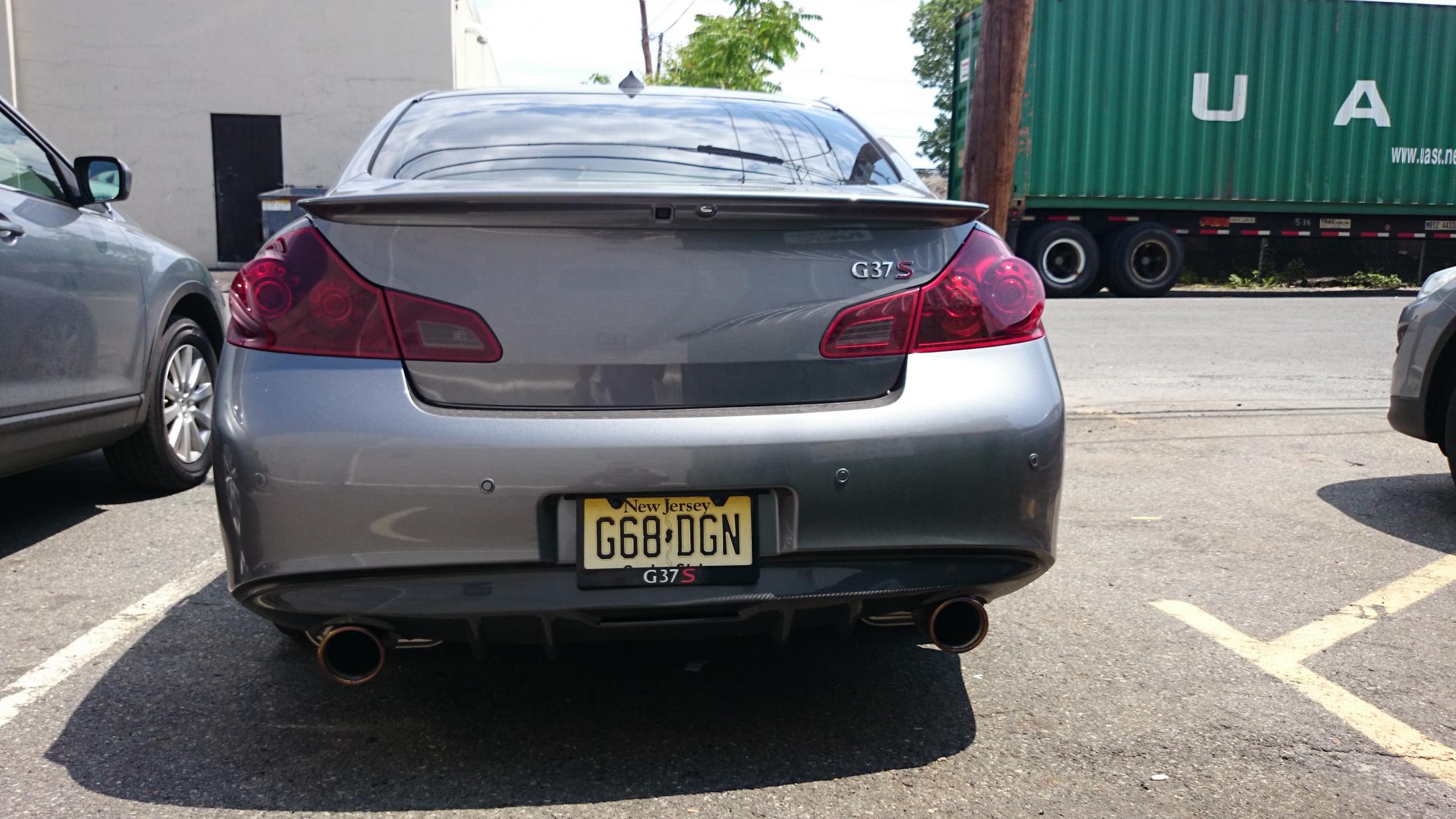 As much as the circular tail lights define the G sedan (or even the "skyline" heritage), those semi-circle lights look mean! And I'm also very rarely a fan of tinted tail lights, but they do look nice against charcoal grey. AND those headlights are somethnig else.