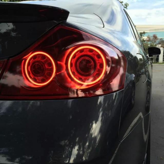 For the most part, when you see those double LED tails from the rear at night, you know what you're rolling up on *almost*. It's either an G35 Coupe, G35/7 Sedan, or a GT-R (when they're just way larger than the Infiniti version). Save for Dodge or Chrysler who shamelessly ripped off the design for one of their models.