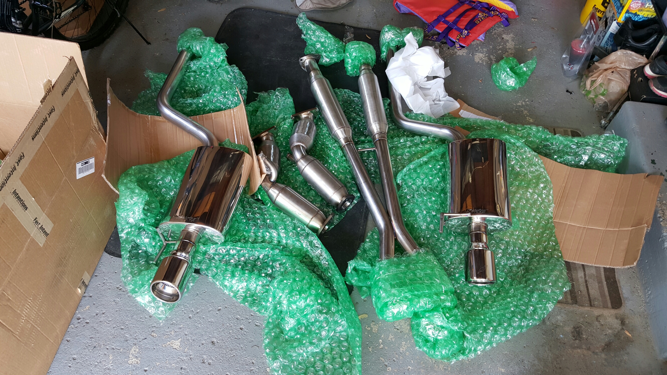You make that sound so simple. I see you also have a pair of resonated cats. Good luck just "bolting them on". Better said, good luck getting the OEM cats off.$2,200 worth of aftermarket exhaust parts sitting on your floor. I bet you're pretty jazzed up.