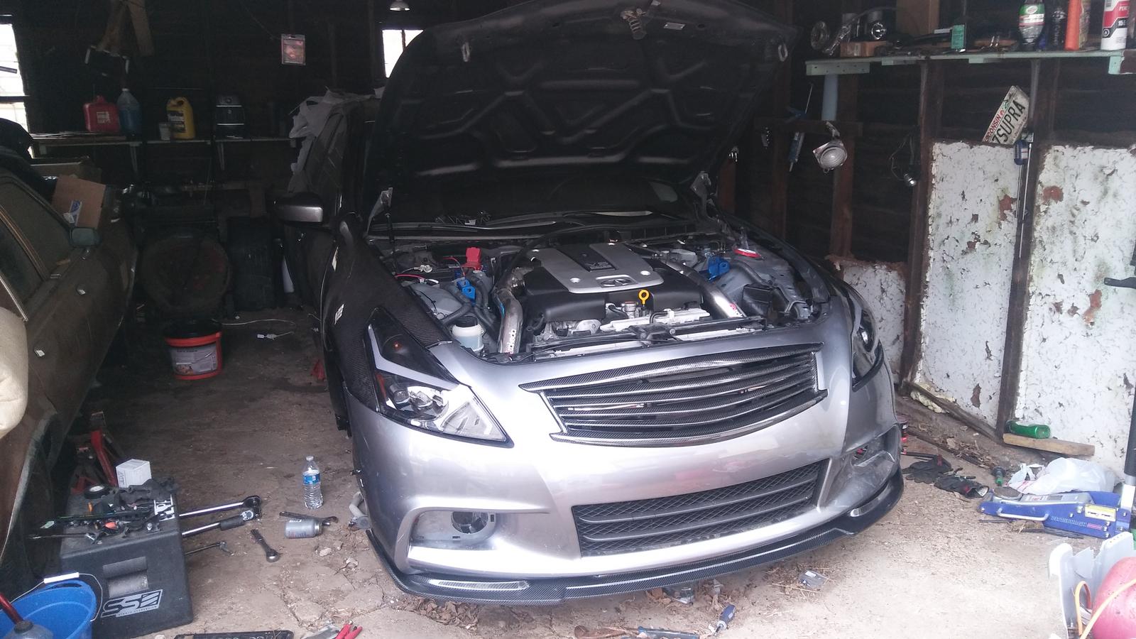 Bled my brakes. Went over each caliper in order twice since the system was pretty much EMPTY. I'm so close to having this thing finished with my stage 1, I can almost taste it now. Bumper on too.