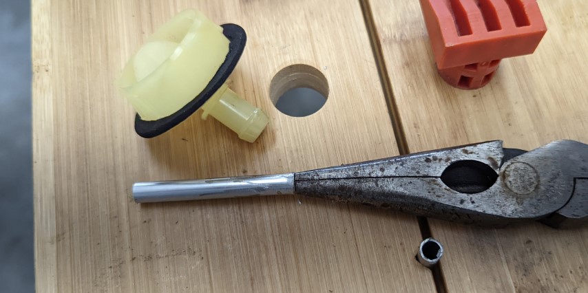 Overall was easy just need some patience on the re-install. I used 11" Pliers with a 90° nose and had both of them out in 10min. I then used used a 1/4" OD Craft Tube (K&S 8106) which is a little undersized with the ID of the drain (6.75mm). So I ended up flaring the tube on one side and pulled it in tight. Then used some E6000 to seal it all up.