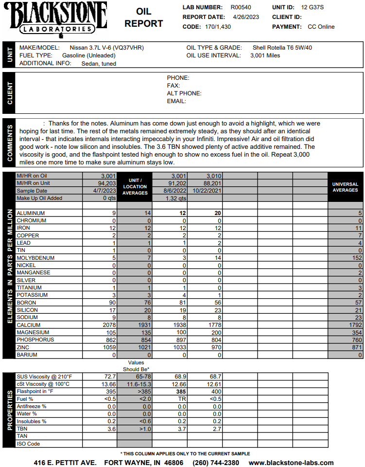 All tests in screenshot are same oil.