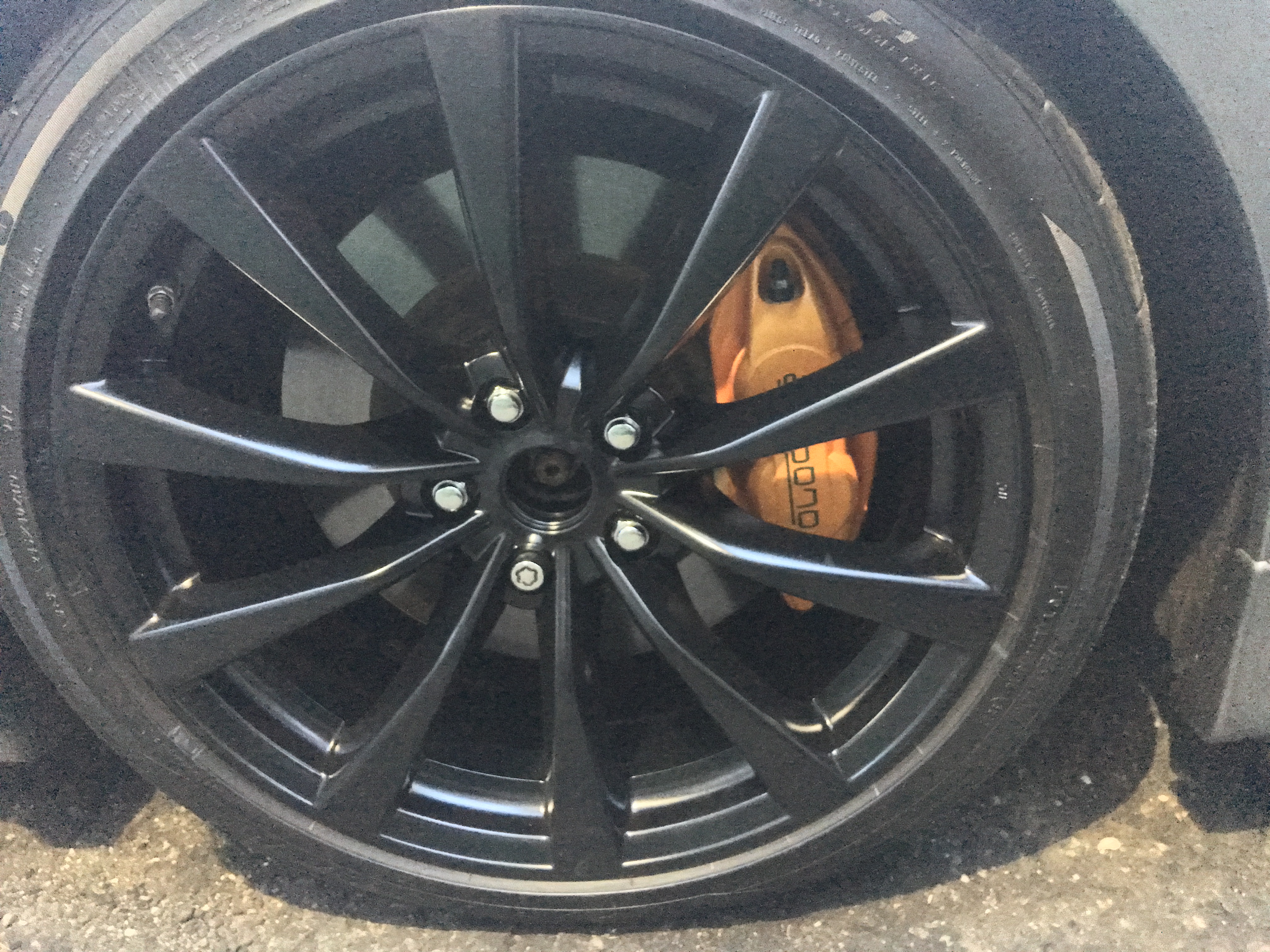 Got the wheels redone in a metallic black with a satin clear. To me it's more agressive looking and makes the calipers pop more. Sorry for the iPhone pic.