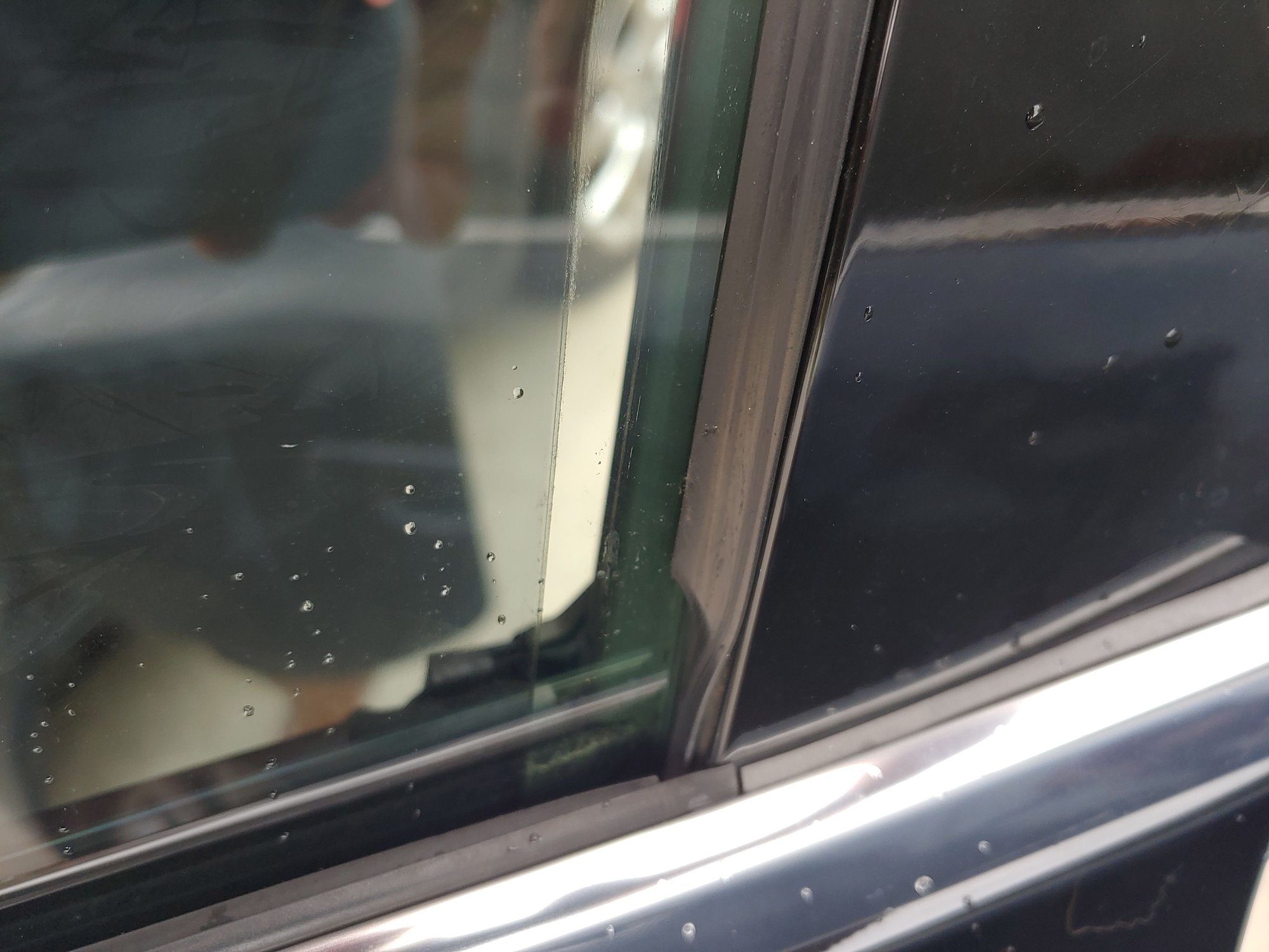 Hey all- car was parked for two days in driveway, got in it today...hot as heck...so roll all windows down and then started rolling them all up....all went as normal except the drivers window ...it won't seal..t goes up and down, but won't fully close..any ideas? This is in the fully closed position .... Window gap