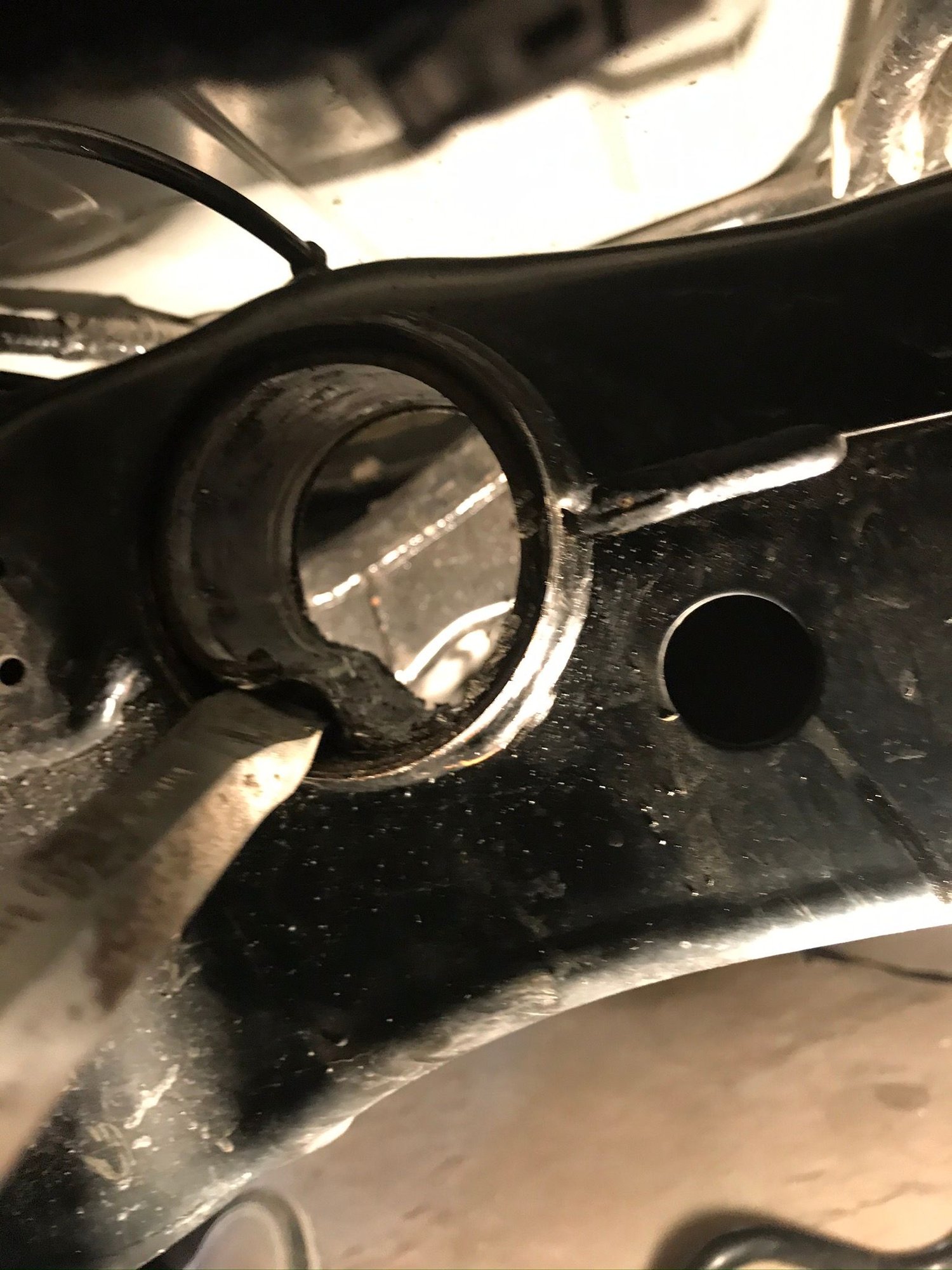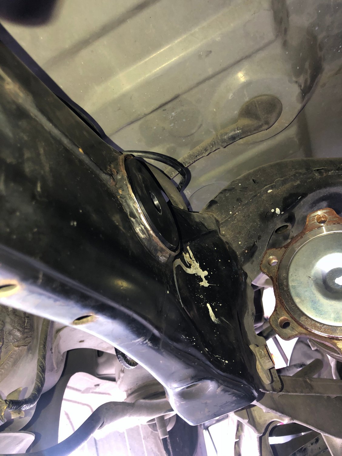 I actually hammer the bushing twords the back of the car more. I don’t think it matters the paint coming off, the bushing isn’t cold anymore so I kinda expect to lose some paint