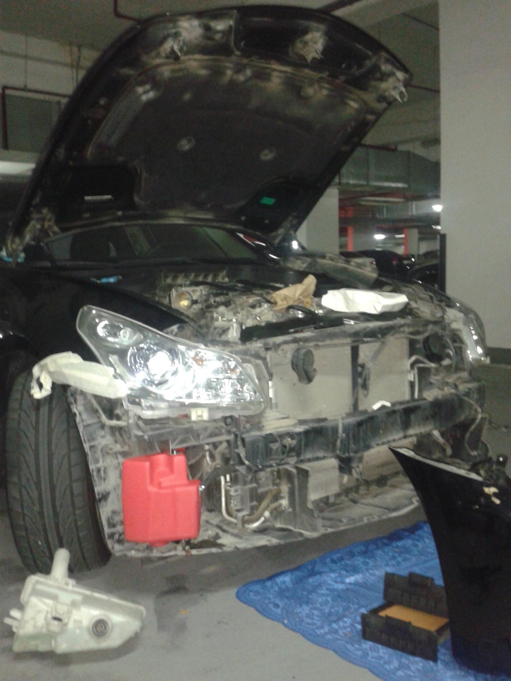 Hi guys. I just installed my new intakes with a couple of my buddies, and my god was it a pain in the a$$ to get that bumper off. It took us about three to four hours to get the whole job done