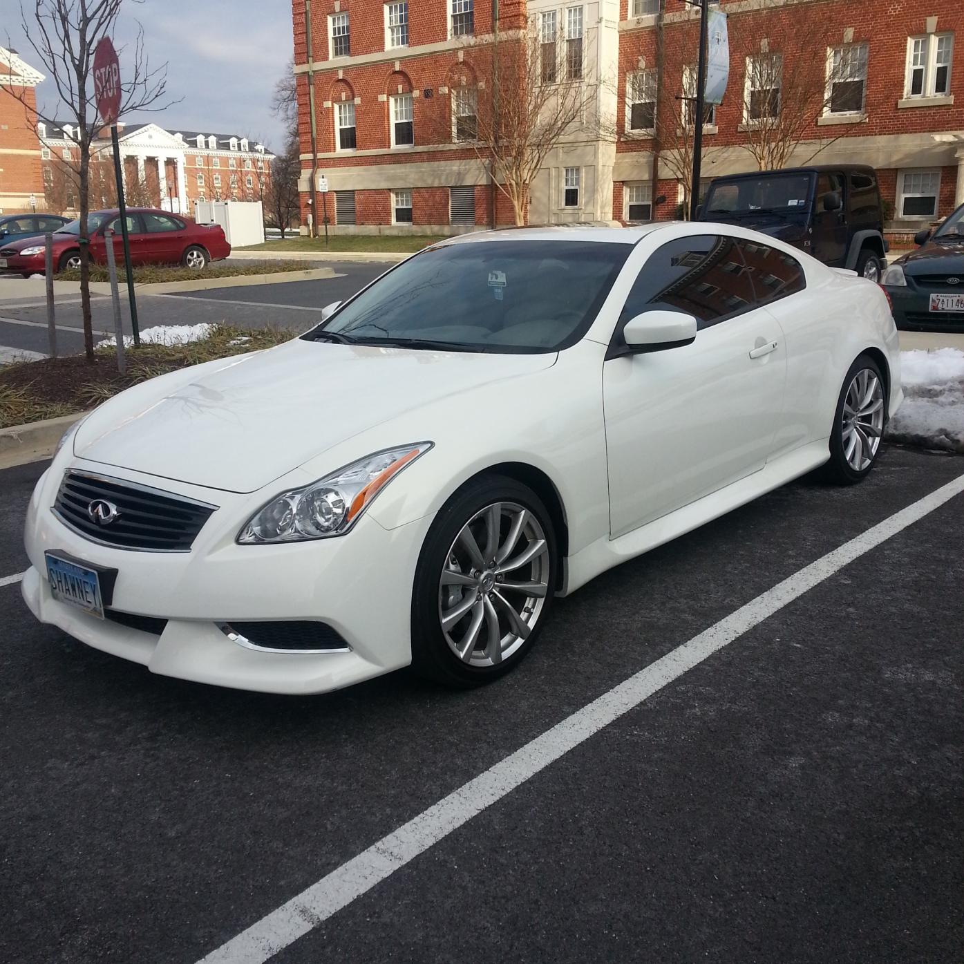 Hi all... just purchased the '10 G37S 6MT on Saturday.. best decision I could have made.. traded my Genesis Coupe... rare find (pearl white with IPL kit 18k) Truly a blessed chick right now.. can't wait to get started.. Bagged, tint, shoes, sound.. in that order! Look forward to getting ideas from all of you...