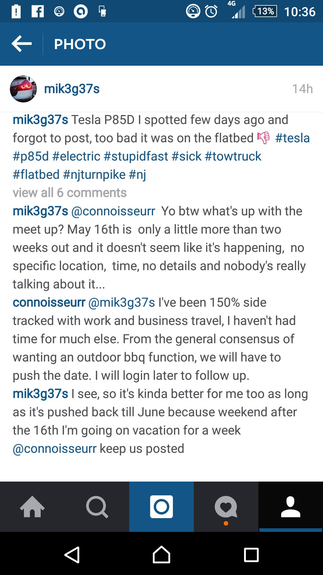 Me and Conner exchanged few comments about this on Instagram as you can see, but I'm going to let the screen-shot speak for itself... as I predicted this will have to be pushed back, and I hope till sometime in June, because if it's a week later then I won't be able to attend..