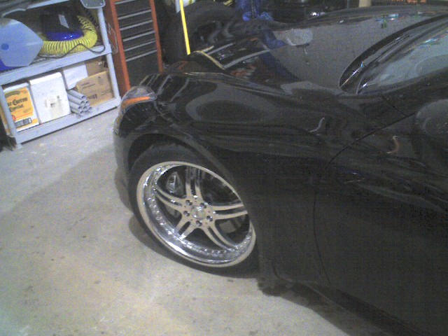 Yeah the rear springs are on in this pic (tanabe drop), I had to take them off the first day until I seen what was rubbing in the fender well, so i could cut it out.. The specs on the wheels. 25mm offset all the way around, I have a 5mil spacer in the front. Simple set up 20/8.5 front, 20/10 rear, 245/35 front tire, 275/30 in the rear.. The rear had a little rubbing until i trimmed about 1/4 out of the felt material, and trimmed where the rear bumper met the fender, about 1/4 inch on the corner.. Had to order hubcentric spacers for the front cause i have a little vibration in the front end.. Hopefully they get here soon.. All in all I'm happy!