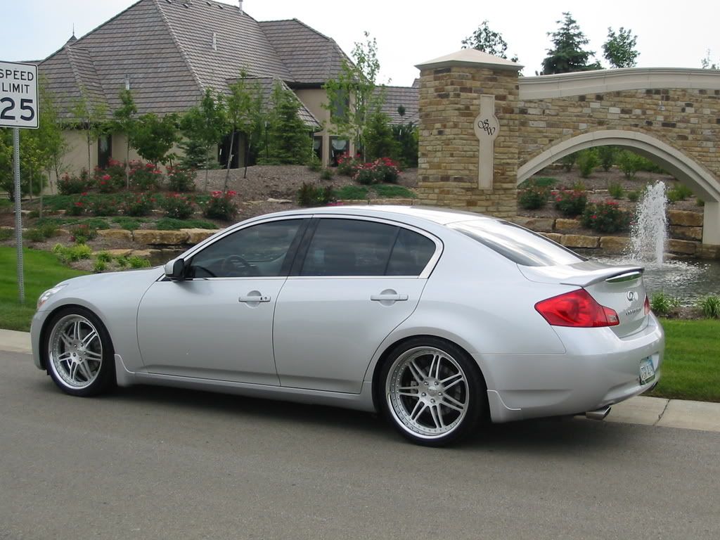 Must be the RWD, I wish the front was a finger lower but o`well. The spacers do make a significant difference. My friend had an 08 IP sedan with the same drop and wheels and wasn't running spacers and it didn't look right, his wheels were very tucked.
