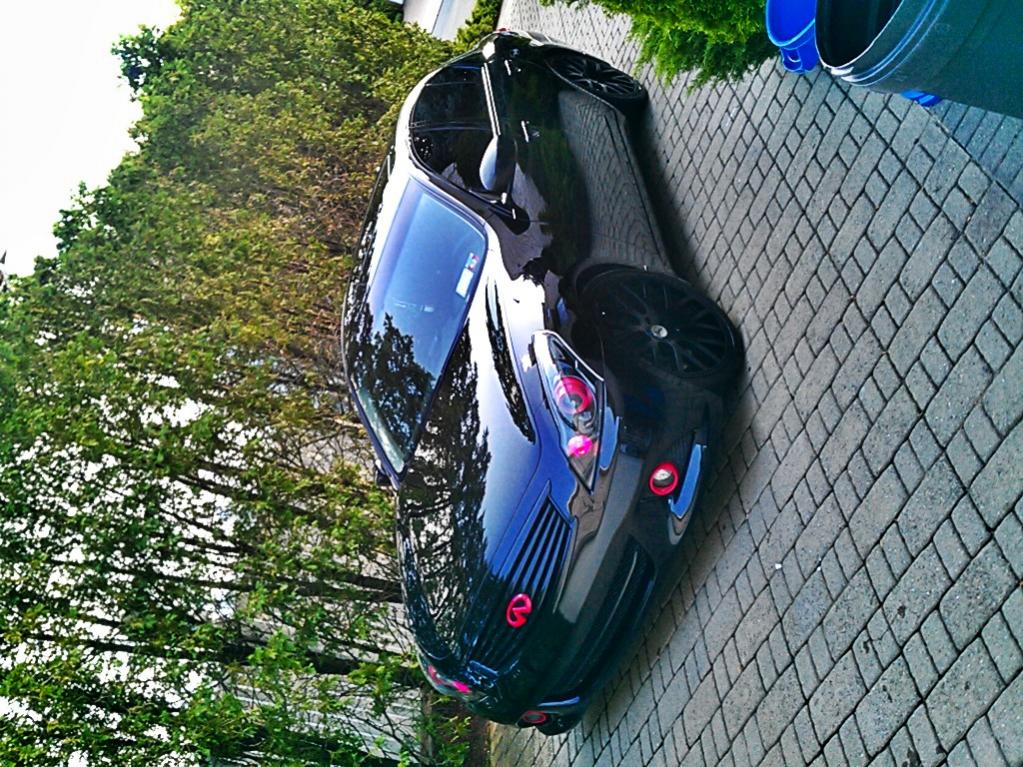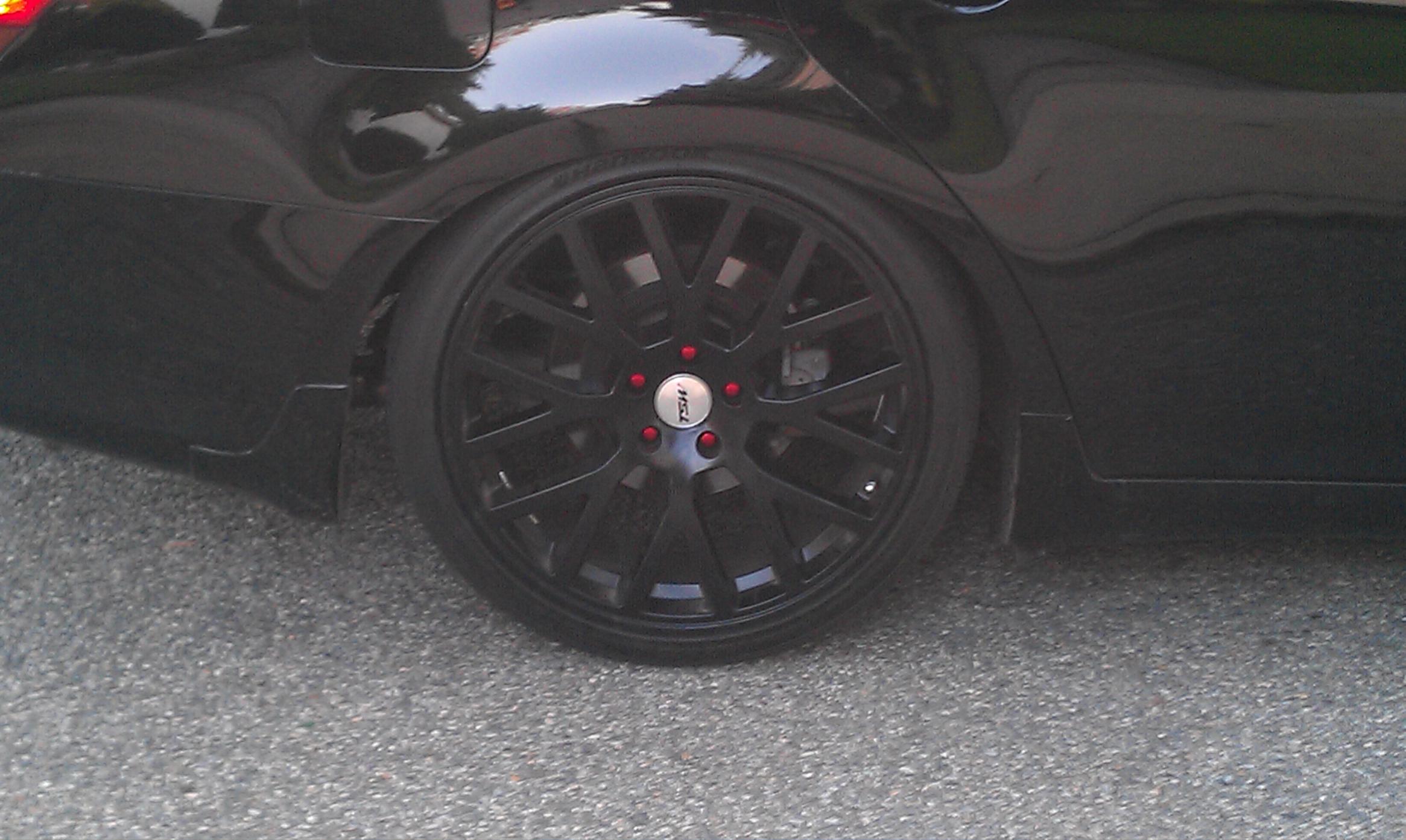 Looks good. You should paint your calipers red to tie in with your headlights and they would pop on your blacked out look.