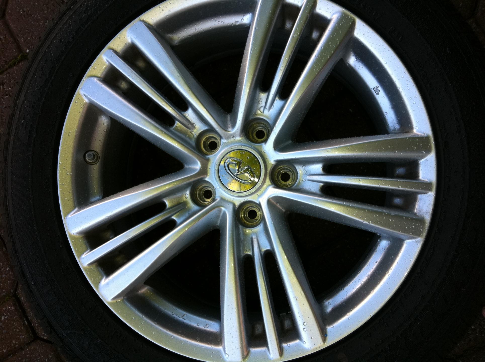 I have a set of Infinit OEM rims (4) from a g37x. Comes with Goodyear RSA - 225-55-17. It is in pristine condition as it was used only for 2000 km. No curbs and any sort of scratches. I have decided to get aftermarket rims.