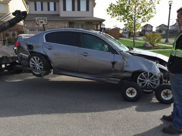 Engine and Transmission are not removed; you will need to remove or pick up the entire chassis with Engine, Transmission, Harness, ECU, AC, Suspension, 18" Rims (2 are cracked on the inner side, but hold air), Dash and much more will be all included!