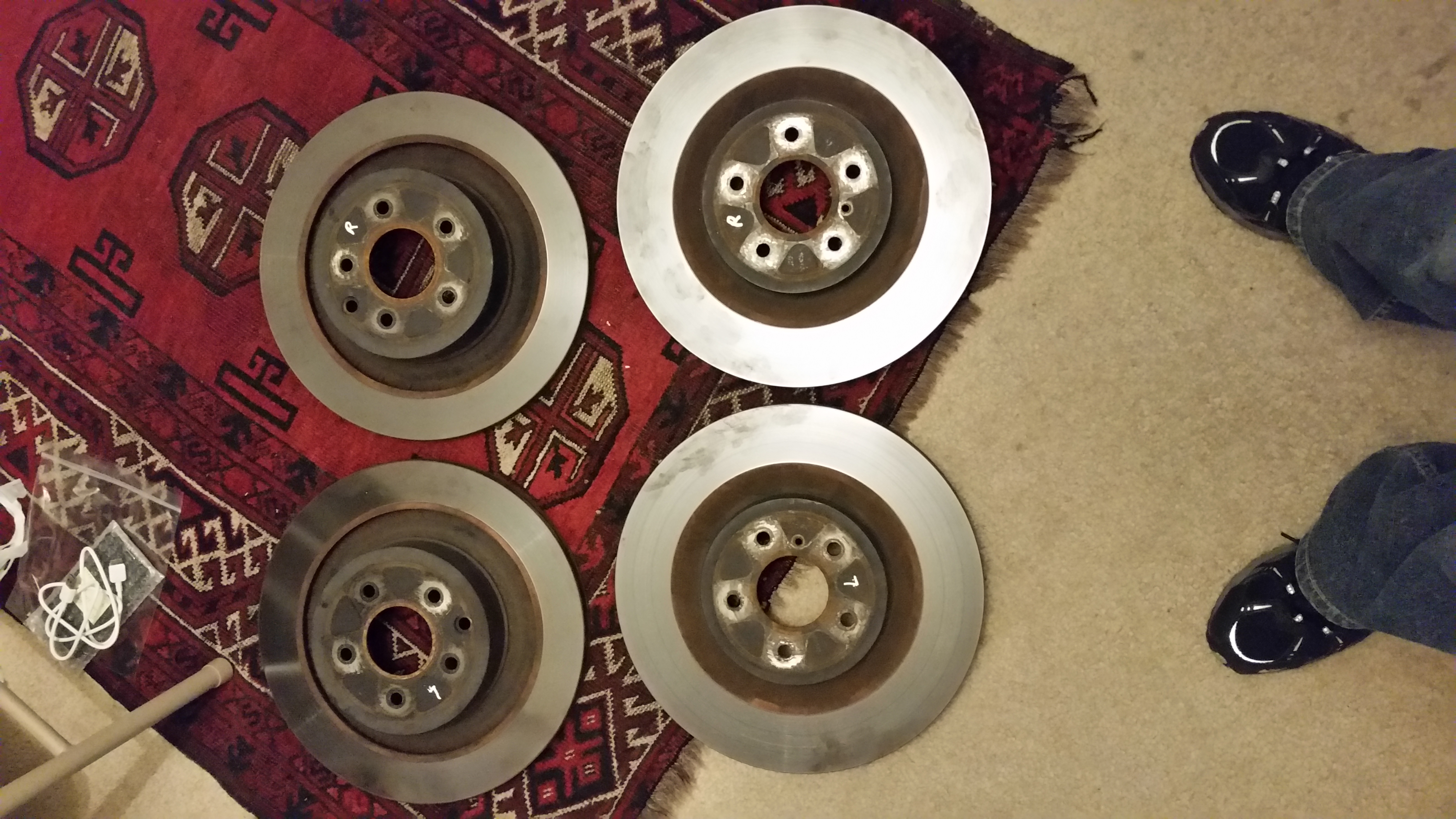 F+B Rotors (To be completely honest I don't anything about cars. I bought this car used and shortly after got slotted cross drilled rotors and these have been sitting in my house for a while. They seem to be in great condition but what do I know.) - $130