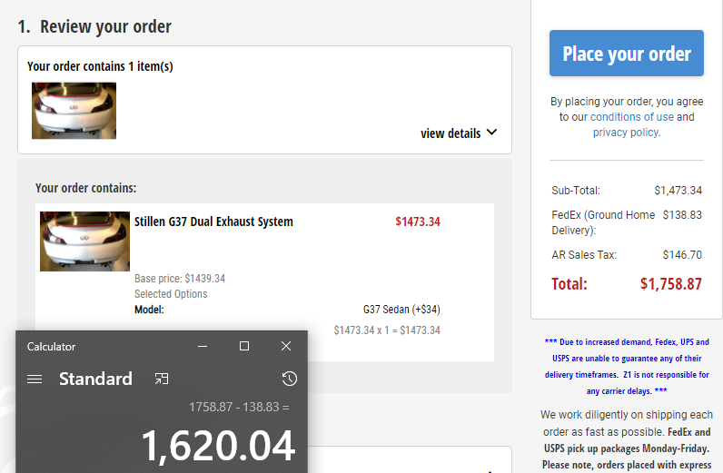 - Below is a screenshot of how much I paid, minus the shipping cost: