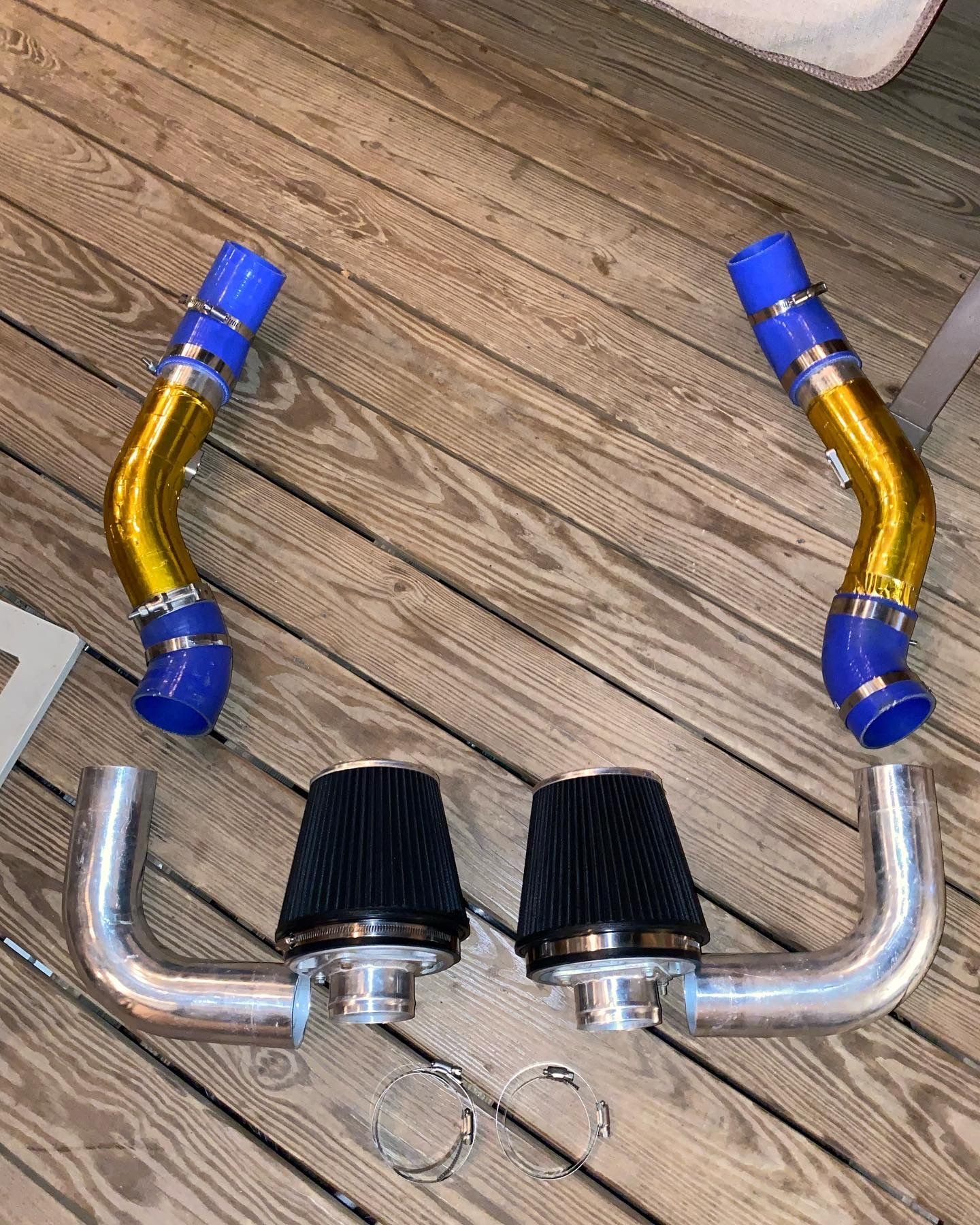 • SOLD 3” intakes Upton heat wrapped with brand new 3” filters (not pictured) , and couplers for 76mm Throttle bodies.