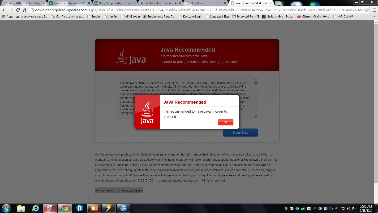 I appreciate you passing along the classifieds ad just in case. For the new Java redirect that you received, can you please send me the specific page you were on before you clicked to page 2?
