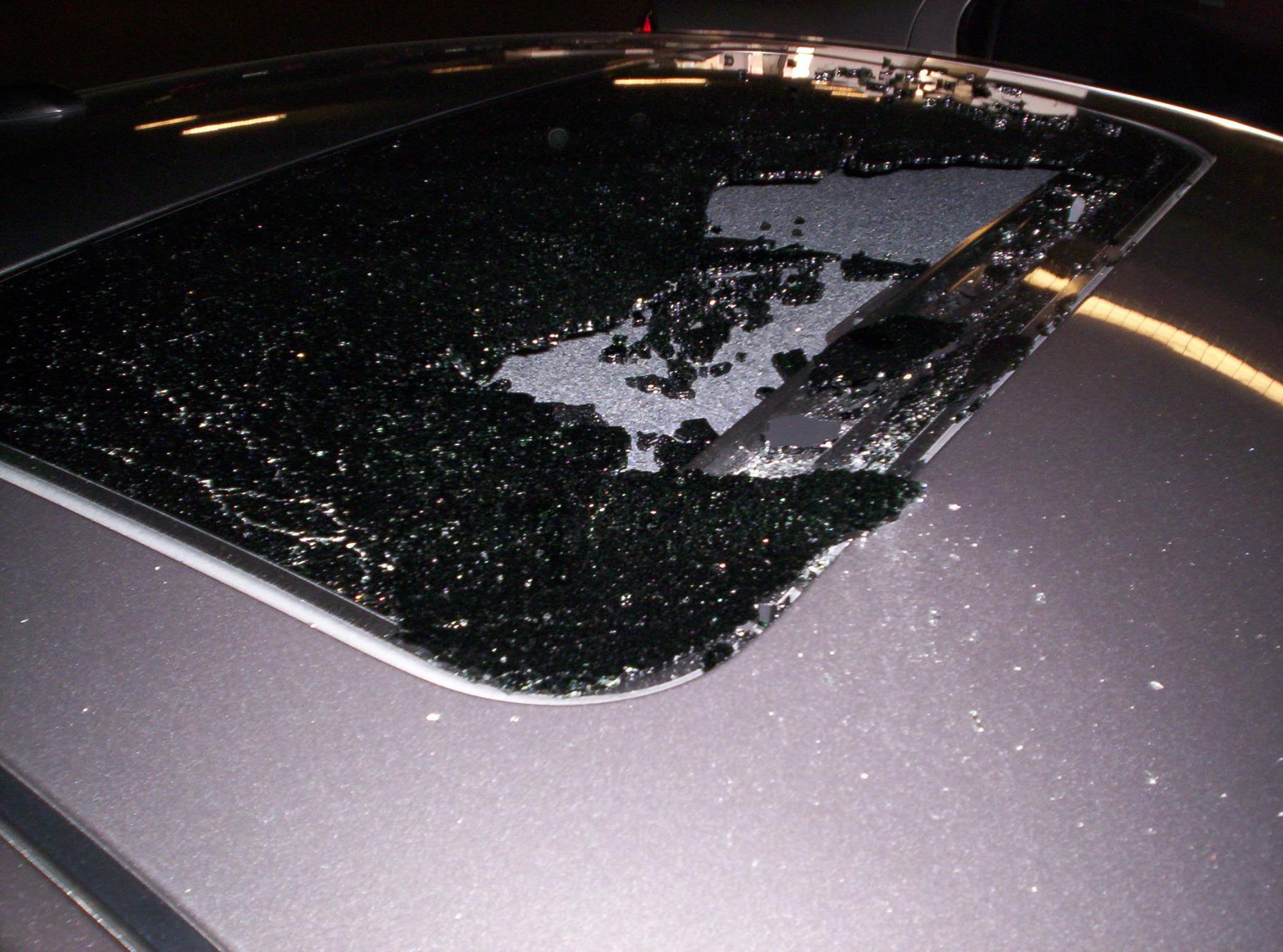 good thing your moonroof door was closed....it would have been even more of a **** on an open wound to have to clean the glass from within the car