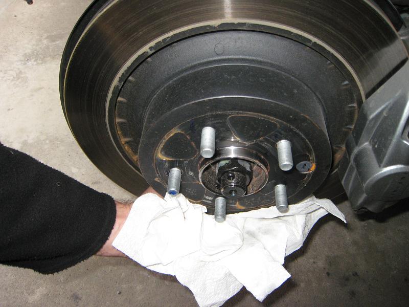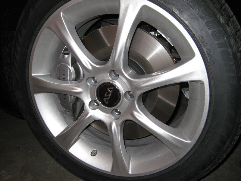 You'll need paper towels, WD40, a decent tire wrench. Leave the yellow centering ring on from tirerack when you mount the tires. This really helps center the wheel. If you take it off, your tire will probably be off center and hence off balance and will cause vibration when you drive. Took me about 2 hours this time around as it was my first time with the G (I normally do all 4 tires on my Corrado in 35 to 40 mins). Most of the time was spent looking for the right place to put the floorjack, and reading instructions. In the summer I'll probably be able to get this down to my normal time.