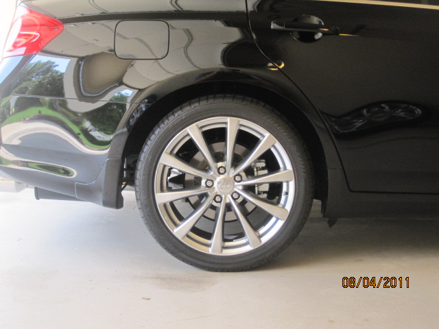 I got a set of the coupe 19" wheels to replace my 17" wheels on my journey sedan. The wheels came with 245/40 front and 275/35 rear. The front are nice and flush but the rear stick out a little beyond the fender.