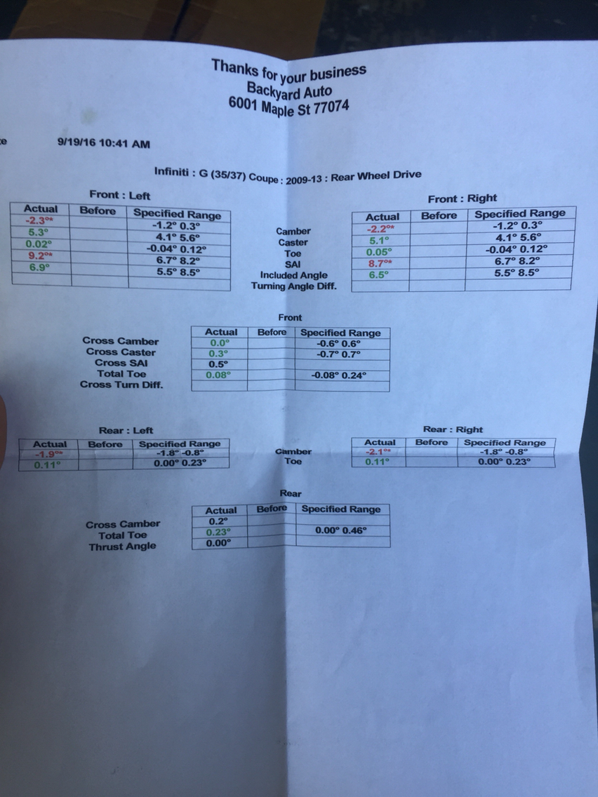 TBH, everything looked pretty good until you posted that 4th pic, that camber looks to be quite higher than a -2, or is the car on some heavy angle that the pic isn't really showing??