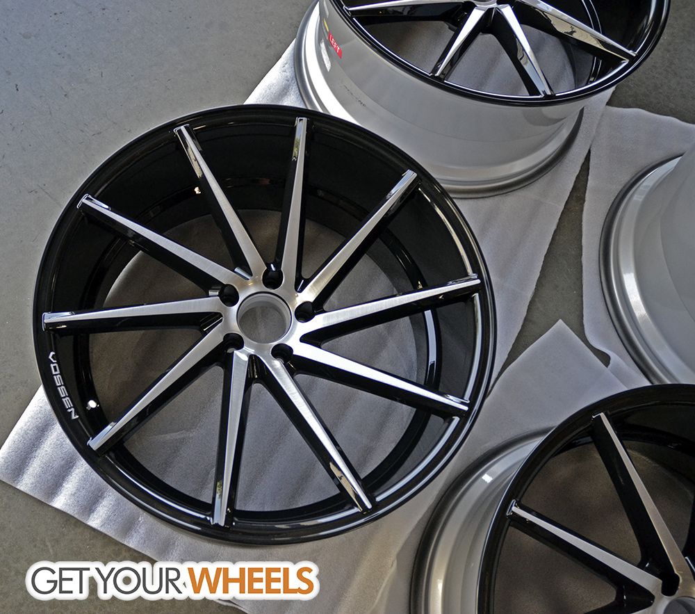 I absolutely love the details on this set, such as the colorful metallic flake in the black paint as well as the brushed Vossen lettering on the lip!
